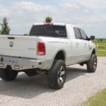 2014 Ram Mega-Cab, Laramie Package with Tan leather, heated/cooled front seats, heated rear seats, Alpine Aftermarket DVD in roof with 2 sets of headphones, Factory navigation, back-up camera, AMP Research power running boards, tinted windows, color matched sprayed in bedliner, B+W turnover ball in bed, Weathertech Floormats, factory floor mats, Color matched with bedliner Ranch Hand Front and Rear Replacements, 6 inch Lift Kit, BD 20: wheels, New Nitto AT tires (37/12.50R20). Truck has 69000 miles and carries the remainder of the 100K Cummins Diesel Motor Warranty. Texas truck with no accidents and 2 owners shown