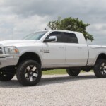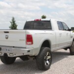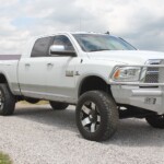 2014 Ram Mega-Cab, Laramie Package with Tan leather, heated/cooled front seats, heated rear seats, Alpine Aftermarket DVD in roof with 2 sets of headphones, Factory navigation, back-up camera, AMP Research power running boards, tinted windows, color matched sprayed in bedliner, B+W turnover ball in bed, Weathertech Floormats, factory floor mats, Color matched with bedliner Ranch Hand Front and Rear Replacements, 6 inch Lift Kit, BD 20: wheels, New Nitto AT tires (37/12.50R20). Truck has 69000 miles and carries the remainder of the 100K Cummins Diesel Motor Warranty. Texas truck with no accidents and 2 owners shown